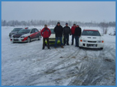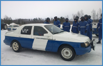 | Lumi- ja jääkelin ajo-opastusta kolmelle puolalaiselle antoi rallikuljettaja Jani Paasonen. |